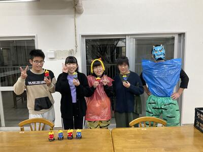 先日の2月1日(木)に節分行事を行いました。夕食には恵方巻きが提供され、「東北東」を向いて食べました。また、豆まきをする際には鬼役を生徒がしてくれました。参加人数は少なかったですが活気あふれる楽しい行事となりました!