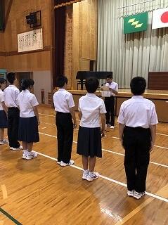 終業式の前に、7月4日・5日に大分で行われた九盲体参加(STT)者への表彰式が行われました。「来年はもっと練習してリベンジします」という決意表明もあり、頼もしさを感じました。