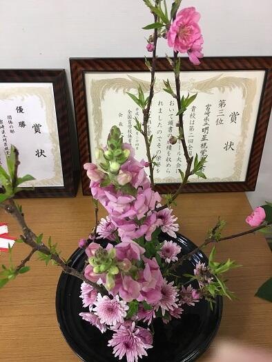 理療師国家試験も終わり、理療科3年生たちが学級担任と共に校長室へ挨拶に来てくれました。それぞれのこれからの決意を聞かせてもらいました。これから生徒たちは就職準備に入ります。宮崎市、都城市などそれぞれの地域で就職先を探します。これからはさらに息つく暇もないほどの忙しさです。校長室の生花を見ながら、こんな時こそ季節を感じる心を大切にしなさいと伝えました。