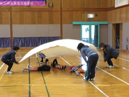 高等部普通科3年生が国語科表現の授業で、幼稚部の子どもたちのための触(さわ)れる絵本を作りました。タイトルはオリジナル「動物しりとり」です。今日の3校時に幼稚部へ出向いて、子どもたちに披露しました。動物の輪郭や特徴がわかるように工夫してあります。笑顔で一緒に絵本を楽しんでいました。