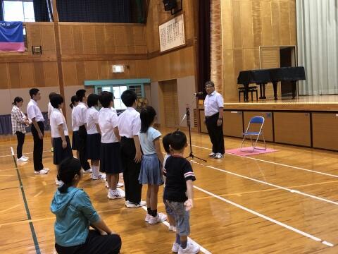 7月25日、1学期の終業式が行われました。幼稚部、小学部の幼児児童から1学期頑張ったことを発表してもらいました。4月からするとみんな頑張っていることがわかりました。夏休みの過ごし方について、生徒指導主事の先生から話を聞き、何が起こるかわからないこの頃、「自分の身は自分で守る」ことを学びました。