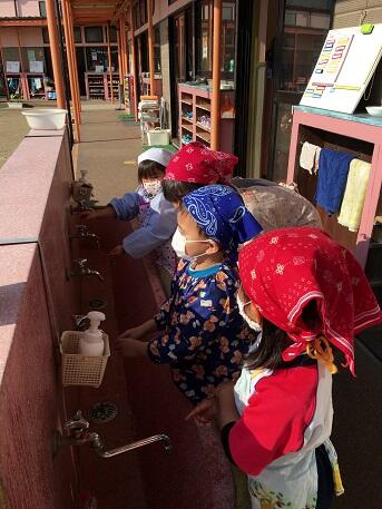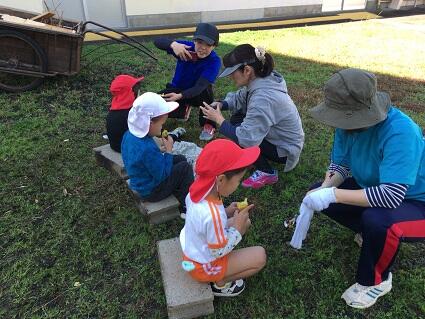 (幼稚部) おいしい焼き芋ができました。「いい匂いがする!」