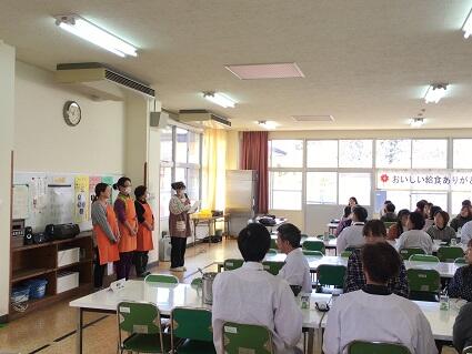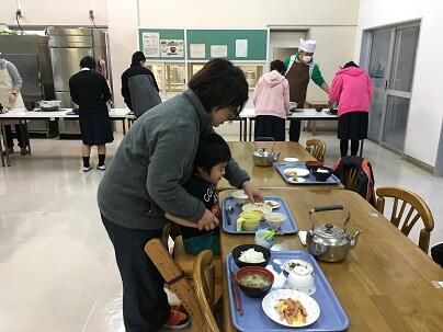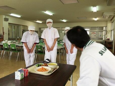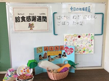 今日、給食時間に給食感謝の集いを行いました。今日の給食は、給食が始まった当時の寺子屋で出されていた給食の献立を再現しました。メニューは「粟ご飯、鮭の塩焼き、じゃがいものすいとん汁」です。給食の原点だそうです。また、いつもおいしい給食を作ってくださる厨房の方々へ中学部から歌のプレゼントをしたり、幼稚部からメッセージをお渡ししたりしました。中学部の歌「にじ色給食バージョン」は、歌詞の内容や抜群の歌唱力が感動的であり、厨房の方々も涙されていました。寒い季節の温かい行事となりました。