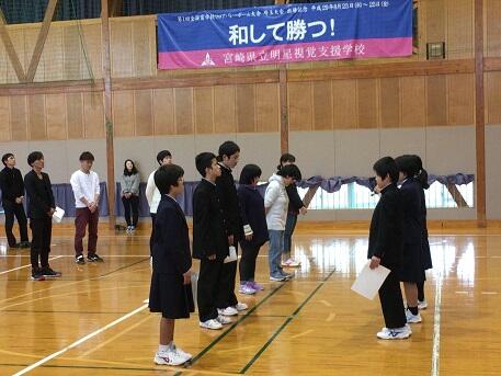 今日、メディキット県民文化センターで宮崎県高等学校体育連盟スポーツ賞表彰式が行われました。本校は、九州地区盲学校フロアバレーボール大会優勝、全国フロアバレーボール大会3位の成績が認められて表彰されました。高等部1年の生徒が代表として参加し、賞状と盾を受け取りました。生徒たちの挑戦がしっかりと評価されてとても嬉しいです。また、式の中で講演もあったようで、「ポジティブに考えていくことが大切だと思いました。」と講演の感想を話してくれました。現在、本校は周囲から「挑戦の中で教育する学校」と言われています。学校がますます明るい星に輝いています。