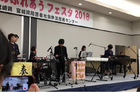 音楽クラブの中学部生徒3名がひむかサウンドクラブの方々と一緒にイオンホールで開催された「“こころ”のふれあうフェスタ」へ出場しました。「きよしこの夜」や「おもちゃの兵隊」を打楽器で演奏しました。見事な演奏に会場から大きな拍手をもらいました。生徒たちは「緊張しました」、「手が震えました」、「みんなに聴いてもらえてよかった」などやりきった満足感と安堵感でいっぱいのようでした。現状に満足せず、より高いレベルを目指す音楽クラブの理念と成果が見られる演奏でした。ご協力いただいたひむかサウンドクラブの方々、応援やお手伝いに来ていただいた保護者や生徒たち、先生方、ありがとうございました。心からお礼申し上げます。