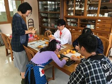 (小学部)干し柿作りに挑戦しました。みんなで皮をむいていきます。