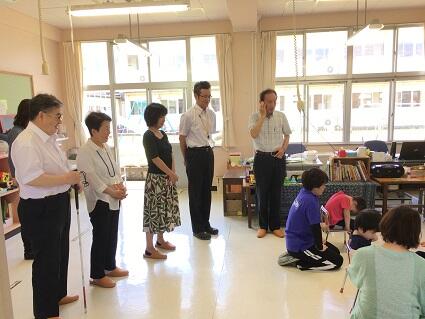 今日は、本校のある住吉地区の民生委員や児童委員の方々30名が本校を訪問されました。地域にある学校として、見学していただき嬉しく思います。生徒指導主事が丁寧にお迎えした後、教務主任が学校概要を説明したり、幼稚部主任や理療科職員が、今年度開設した幼稚部の状況や理療科の現状を説明したりしました。みなさん熱心に聞いていただきました。その後、校内や寄宿舎の見学をしていただきました。暑い中を来校いただき、心よりお礼申し上げます。また、今年度も住吉地区の弁論大会や福祉祭りに参加させていただきます。今後ともどうぞよろしくお願い致します。