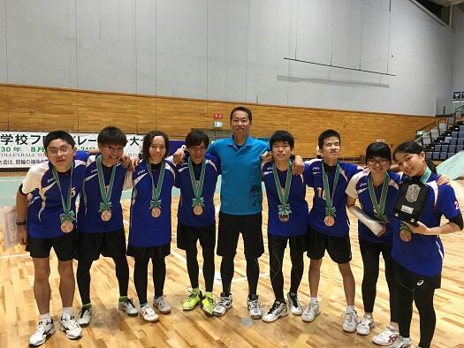 監督と銅メダルを胸に嬉しそうな生徒たち