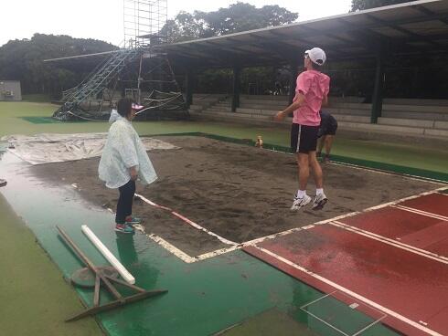 平成30年8月18日(土)、19日(日)に平成30年度全国障がい者スポーツ大会にむけた合宿が木花の運動公園でありました。本校高等部2年生が代表選手に選ばれて、職員と参加しました。陸上800メートル走と走り幅跳びに出場します。大切なチャンスをいただきました。雨の中、必死で練習する生徒と指導する本校職員に感動しました。