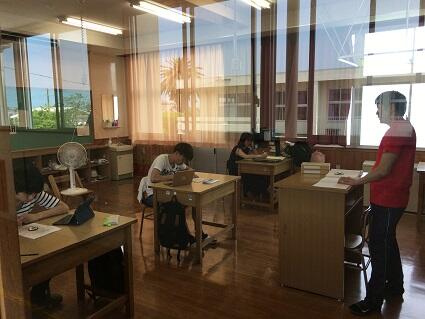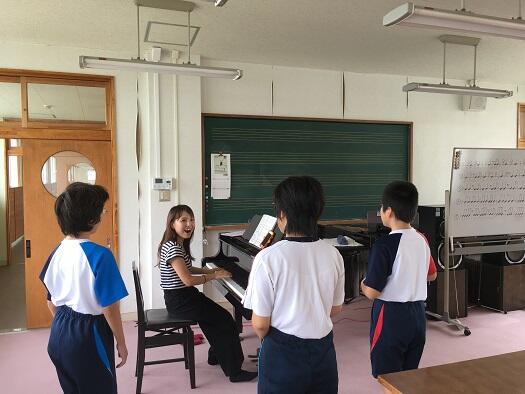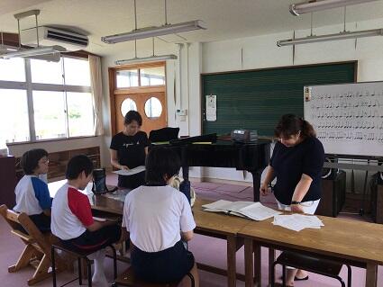 夏休みに入りましたが、生徒たちは補習や部活動に取り組んでいます。中学部の生徒たちは音楽クラブに入り、歌や楽器演奏の練習を始めました。今日はピアノ演奏に合わせて歌の練習をしていました。3人の歌声が音楽室に響いていました。楽しみはたくさん合った方がいいです。音楽クラブのあらたな挑戦が始まりそうです。