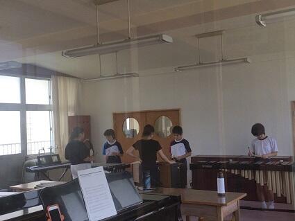 今日もフロアバレーボールチームは全国大会に向けての練習に取り組んでいます。一人一人の動きとフォーメーションの練習です。理療科をはじめとする各学部の先生方も練習に参加して、明星生徒チーム対職員チームの対戦形式で行っています。監督の指示に従って、声のかけ方、ボールの出し方、受け方、動き方などを一つ一つ確認しながら練習しています。本気で優勝を目指していることが伝わってきます。音楽クラブは、歌の選曲が決まりました。こぶくろのWINDING ROADです。三人でのアカペラのハモりです。そして、合奏はマリンバ演奏に取り組むことになりました。中学部の生徒たちが、楽しみながらも、真剣に取り組んでいます。10月の文化祭での発表が楽しみです。