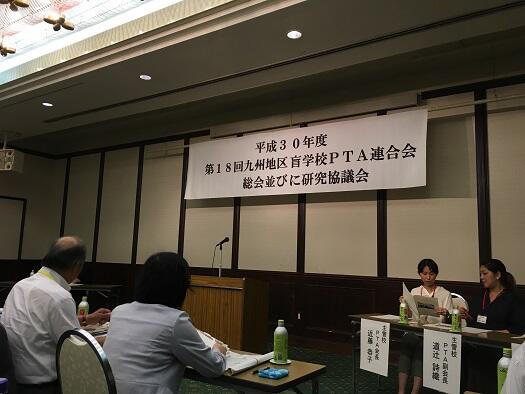 6月15日(金)に第3回PTA役員会を行いました。先日行われた平成30年度県立特別支援学校PTA連絡協議会の陳情事項の報告や日常生活給付用品の陳情状況、物品販売状況等の報告がありました。今年度はPTA会長や副会長が代わり、新役員体制となりました。昨年からの流れをしっかりと引き継ぎながら一歩ずつ進み始めています。平成31年度は九州地区盲学校PTA連合大会の主管校でもあるためPTAと学校が力を合わせて取り組んでいきたいと思います。保護者と学校が思いを一つにする大切なPTA役員会になりました。