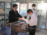 校長室での授与式ということで、とても緊張した面持ちの新自治会役員4名でした。校長先生から「寄宿舎生一人一人が自分らしさを生かし、主体的に取り組む姿が見られる寄宿舎にするために、みなさんの力が必要です。頼みましたよ!」というお話をしていただき、決意を新たにしたのではないでしょうか?