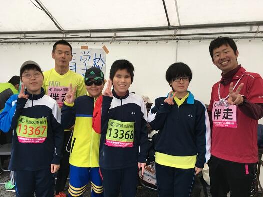 12月9日(日)に第27回視覚障害者マラソン宮崎大会(第32回青島太平洋マラソン2018)が宮崎県総合運動公園をスタート会場にして行われました。本校からは3㎞の部に小学部、中学部から4名、10㎞の部に高等部から4名、そして、卒業生が出場しました。気温が下がり寒い日でしたが、それぞれの部が号砲とともに出発し、全員が完走しました。走り抜いた生徒たち、お疲れ様でした。そして、伴走としてサポートしてくれた先生方や関係者の皆さんありがとうございました。