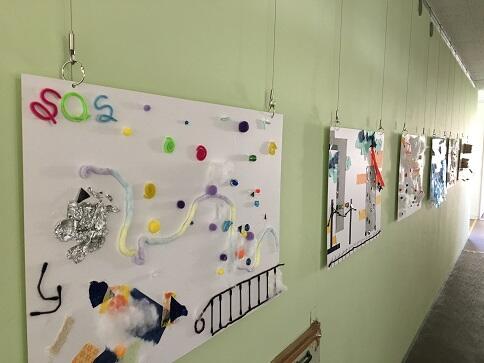 11月16日に京都の美術家「光島貴之/みつしまたかゆき」先生を講師にお招きして、本校中学部・高等部生徒と宮崎北高等学校の生徒で「ことばでみる美術鑑賞」を県立美術館で行いました。その中で、合同で立体作品を創作しました。各班ごとに話し合いながら、練り上げた作品です。今日はその作品を生徒と職員で、校長室前のギャラリーに展示しました。どの作品もユニークな創造にあふれた立体作品です。また、来週の12月11日(火)には、第2弾の県立美術館の移動教室を開催します。宮崎北高生も参加して、「ことばでみる美術鑑賞」を「より本物」に、「絆をさらに太く」していきます。