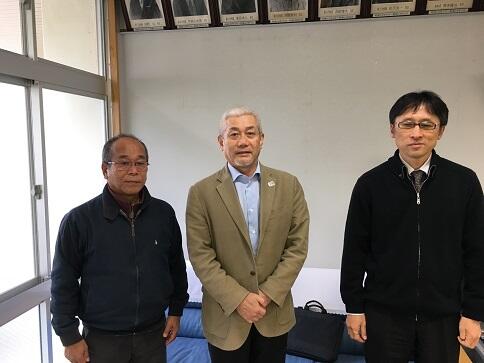 左から宮崎県空手道連盟の深水副会長、田岡副会長、本校理療科主事