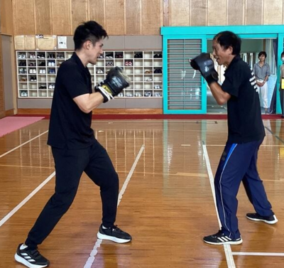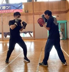 さっそくゲストティーチャーをお願いし、本物の「ボクシング」を教えていただきました。