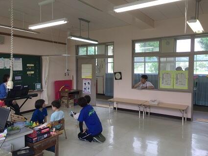 今日は、本校ALTのケリー先生が来校して、高等部の英語担当の教師と一緒に、幼稚部の英語の授業を行いました。子どもたちがとても楽しみにしている「英語で遊ぼう」の時間です。英語は、小学部ではいよいよ教科として始まりました。幼稚部でも遊びを通して、本物の英語に触れて欲しいと思っています。今日の幼稚部の授業では、はじめは、子どもたちも緊張気味でしたが、しだいに慣れて、遊ぶ様子が見られました。休み時間には、小学部の子どもたちも笑顔でケリー先生と会話をしていました。また、今日は幼稚部の交流教育をお願いする相手校の住吉幼稚園の園長先生と主任の先生が、お忙しい中、幼稚部の見学に来られました。4月に開設したばかりの幼稚部がたくさんの方々の協力を得ながら、未来に動き出しています。