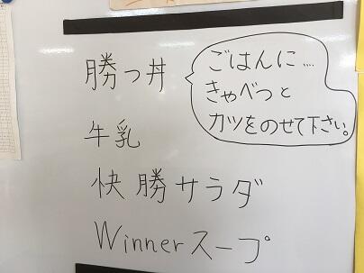 内容は「手作りカツ丼」「快勝サラダ」「Winnerスープ」です。