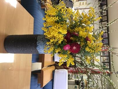 校長室に新しい春の花が飾られました。 雪柳、アスター、ミモザの可憐な花たちです。