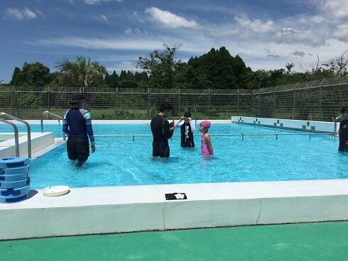 梅雨に入りましたが、梅雨の晴れ間をぬって水泳が始まりました。雨が上がると気温も上がり、絶好の水泳日和です。今日は小学部の子どもたちも準備運動の後、息継ぎの練習をしたり、潜ったり、クロールで泳いだりしながら、それぞれに挑戦していました。
