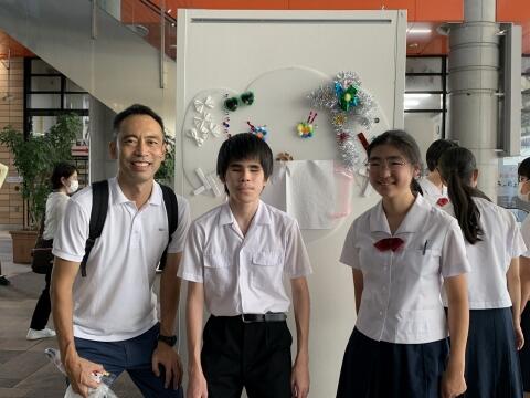 初めての試みでしたが、想像力豊かにアイデアを出し合い、とてもユニークな作品ができあがりました。久しぶりの他校との交流は、とてもいい笑顔。