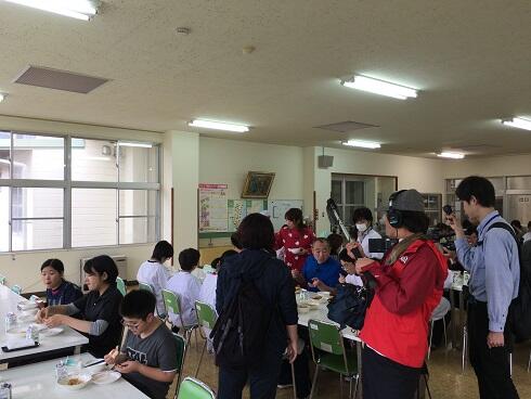 給食の配膳のお手伝いをして一緒に給食を食べていただきました