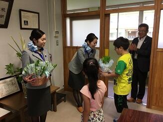 今日、全日空ANAの宮崎支店長様やアテンダントの方が来校され、スズランの鉢植えや押し花などをいただきました。梅雨の中、校長室はすずらんのさわやかな香りでいっぱいになりました。今年、北海道で育てられた花だそうです。小学部の2名が、「いい匂い」「さわやかな香り」と感想を添えて、それぞれにお礼の挨拶をしました。スズランの花言葉は「幸せが訪れる」、「優しさ」、「愛らしさ」だそうです。本校の子どもたち、そして、今回の関係者の皆さんに幸せが訪れることを心から祈ります。