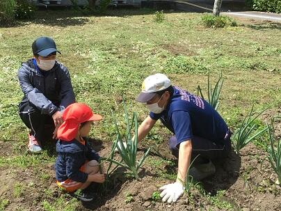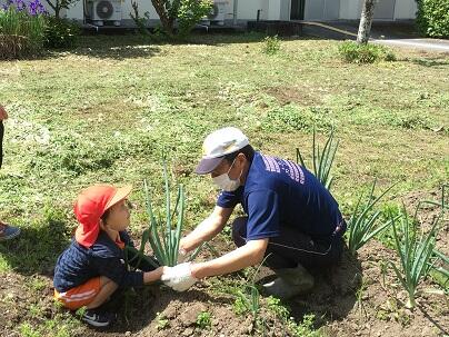 NO105 幼稚部が体験を通して算数の基礎つくり授業 平成30年5月17日(木) 今日は幼稚部がタマネギ掘り体験を通して算数の基礎つくり授業を行いました。実際の体験が、幼稚部の子どもたちにはなによりも大切な学びの場です。その体験に算数の基礎作りの視点も取り入れたいと思い、中学部の数学の先生も一緒に活動しています。かしこまった算数でなく生きた算数の視点です。「おおきい~」「ふか~い」「おんなじ」など数(かず)の基礎となる言葉が子どもたちからいろいろと聞かれました。学校は専門性のデパートです。いろいろなアプローチをしていくことが大切だと考えています。