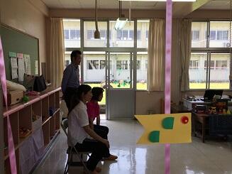 今日は、本校ALTのケリー先生が来校して、高等部の英語担当の教師と一緒に、幼稚部の英語の授業を行いました。子どもたちがとても楽しみにしている「英語で遊ぼう」の時間です。英語は、小学部ではいよいよ教科として始まりました。幼稚部でも遊びを通して、本物の英語に触れて欲しいと思っています。今日の幼稚部の授業では、はじめは、子どもたちも緊張気味でしたが、しだいに慣れて、遊ぶ様子が見られました。休み時間には、小学部の子どもたちも笑顔でケリー先生と会話をしていました。また、今日は幼稚部の交流教育をお願いする相手校の住吉幼稚園の園長先生と主任の先生が、お忙しい中、幼稚部の見学に来られました。4月に開設したばかりの幼稚部がたくさんの方々の協力を得ながら、未来に動き出しています。