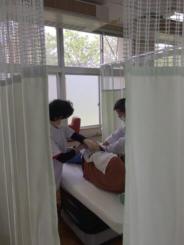 今日から理療科3年生の臨床実習が始まりました。生徒たちは緊張しながらも、担当教師と一緒にしっかりと問診を行い、施術に取り組んでいました。心と技が一つになって、本物の手技になっていきます。臨床実習は、理療科の先生方と生徒たちの真剣勝負の場です。患者の方が校門に入った瞬間から始まります。また、よい理療師は、よい研究家でもあります。理療師として、学びと追究の姿勢を持ち続けて頑張って欲しいです。