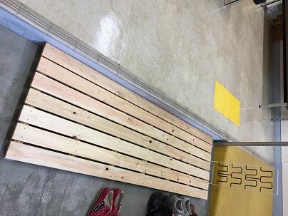 臨床待合室のすのこが長い月日の中でいたんでいました。利用していただく患者さんがつまずいたり、転んだりしないように心配していたところ、宮崎工業高校建築科のみなさんが新しいすのこを作製してくれました。