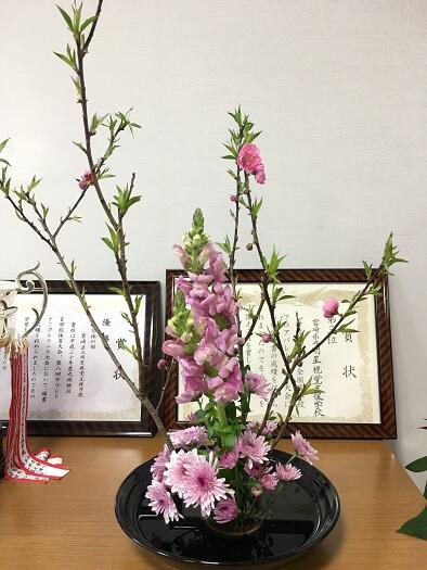 理療師国家試験も終わり、理療科3年生たちが学級担任と共に校長室へ挨拶に来てくれました。それぞれのこれからの決意を聞かせてもらいました。これから生徒たちは就職準備に入ります。宮崎市、都城市などそれぞれの地域で就職先を探します。これからはさらに息つく暇もないほどの忙しさです。校長室の生花を見ながら、こんな時こそ季節を感じる心を大切にしなさいと伝えました。