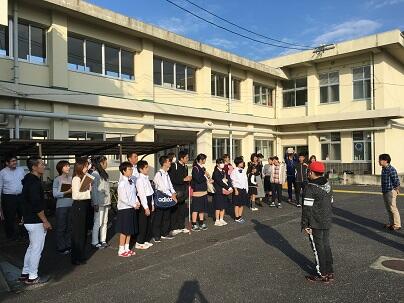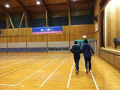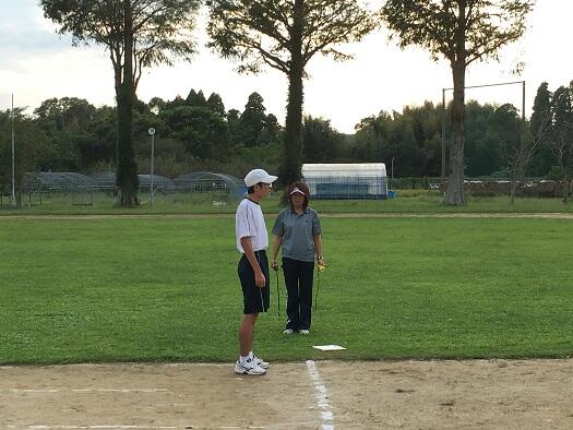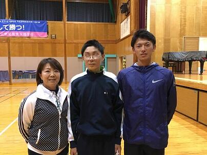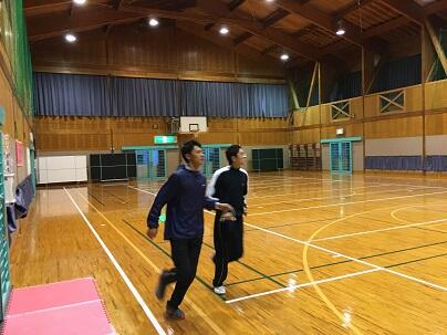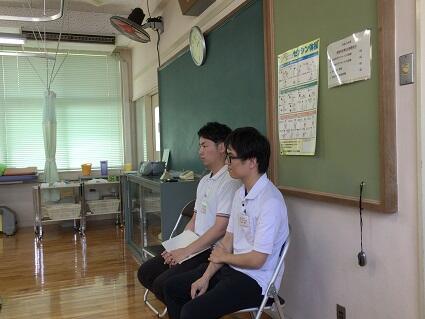同行してきた本校卒業生 理療師の田ノ口キャプテン(右)