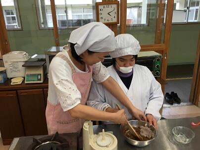 本校にはスポーツクラブ、音楽クラブ、家庭科クラブの三つのクラブがあります。生徒たちは放課後それぞれに取り組んでいます。スポーツクラブは、本校の看板スポーツであるフロアバレーボールの練習を行っています。今年度は全国3位の成績を収め、県教育長表敬訪問も行いました。来年度こそは全国優勝を果たすぞ!という強い思いで、日々練習に取り組んでいます。音楽クラブは、それぞれが新しいパートの楽器に挑戦しています。12月2日(日)にイオンで、ひむかサウンドクラブとジョイント演奏を行います。家庭科クラブは、簡単クッキングに挑戦しています。今日は「レンジでチン、ふわふわチョコマグカップケーキ」と「サツマイモモンブラン」を作っていました。学校だからこそできる挑戦、学校だからこそできる楽しみがあります。一人一人が自分の「生きる」を楽しんでいます。