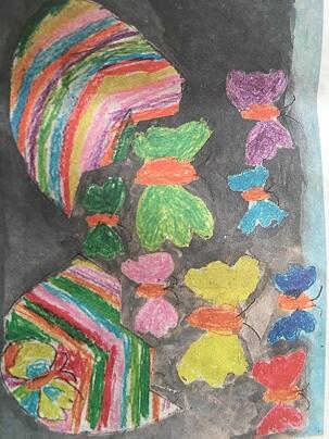 今朝の宮崎日日新聞のエイブルアートコーナーに本校小学部2年生児童の絵画が掲載されました。作品名は「8色のちょうとたまご」です。本人のコメントには「秘密の卵を割ると、どのようなものや、お話しが生まれてくるのかを想像しながら描きました。クレヨンを使って、8色のチョウをきれいに塗るのはたいへんだったけど、塗り残しがないように丁寧に描きました」と書いてあります。いろいろなお話しが生まれそうなカラフルでわくわくする絵です。チョウたちの話し声が聞こえてきそうです。本人の作品への挑戦や学級担任の指導や支援に感謝します。