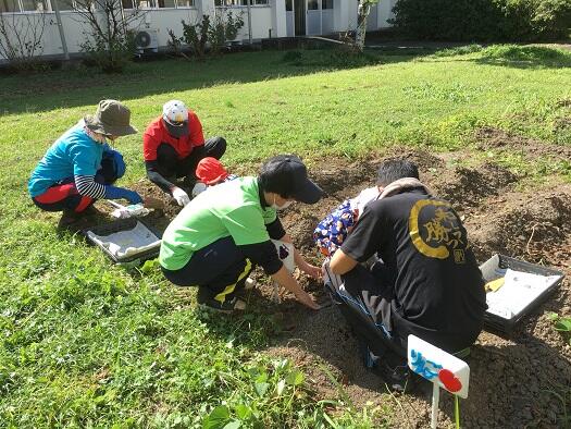 学部を超えて中学部、高等部の数学科の先生が参加しての校内お芋掘りの様子