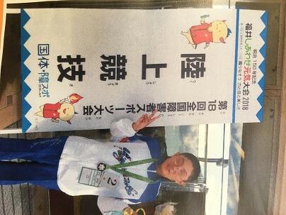 平成30年10月11日(木)から10月16日(火)まで福井県陸上競技場9.98スタジアム他4会場で第18回全国障害者スポーツ大会福井しあわせ元気大会が行われました。本校からは高等部2年男子生徒が陸上競技の立ち幅跳びと800メートル走に出場しました。立ち幅跳びは入賞はなりませんでしたが、800メートル走は、全国第2位の成績で銀メダルを獲得しました。自己記録を12秒も縮め、日々の練習以上の力を発揮したと監督が涙ながらに話してくれました。苦しい練習の日々でしたが、「次年度もまた挑戦したい」という生徒の声に監督はまた涙していました。ロープではない心の絆が結果に繋がりました。