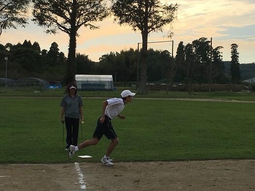 平成30年9月14・15日に第51回宮崎県高等学校新人陸上競技会が、延岡市西階陸上競技場で行われました。本校から高等部2年生男子が800メートル走と100メートル走の2種目に参加しました。800メートル走は自己タイムを7秒縮める快走を見せてくれました。見えにくさの中で、部活動で鍛え上げている高校生と一緒に走ることは、たいへん緊張し、不安もあっただろうと思います。走る前は「みんなが速く見える」と、本人は監督に話していたそうです。しかし、100メートル走の際には、「800メートルがよいアップになり、100メートルは気持ちが楽でした。」と話したそうです。挑戦の前に感じる気持ち、挑戦した後に感じる気持ち、どちらも経験したからこそ感じる大切な気持ちです。心の根は経験をとおして張っていきます。日頃の練習時から生徒を言葉や心で照らし、導いてくれる本校の監督に心より感謝します。10月に行われる全国障がい者スポーツ大会を期待しています。
