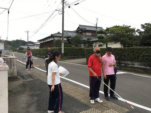 今日、寄宿舎の先生方が白杖歩行指導研修を行いました。学校前の道路の点字ブロック使って、実際に歩行します。白杖歩行をするためには、白杖の使い方をはじめ、身体の動かし方、周りの状況の把握の仕方など多くの知識と技術が必要です。生活を指導する寄宿舎だからこそ、歩行も大切な生活の一部です、寄宿舎の先生方の真剣そのものの研修を嬉しく思いました。どうぞ子どもたちの自立に向けた挑戦と指導をよろしくお願いいたします。