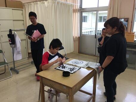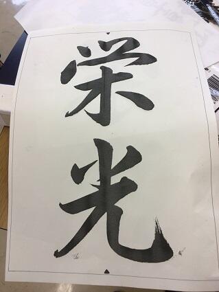 本校では、教師の授業力向上を目指して、全員研究授業を行っています。今日は中学部2年国語科の書道の研究授業がありました。生徒は立体コピーで文字の形や大きさを何度も確認して、習字用紙に「栄光」の文字を漢字で書いていきます。本人に聞くと、行書よりも楷書の方が、わかりやすいそうですが、今日は行書への挑戦です。「栄光」の文字を筆を使って丁寧に書き上げました。本校の基本研修や応用研修で学んだことをしっかりと授業に還元する先生も素晴らしかったです。お疲れ様でした。