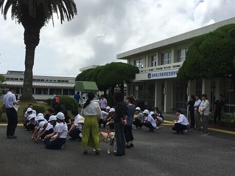 今日の4校時に防災(地震)訓練を行いました。地震速報と共に教室の机に隠れて、各自ヘルメット(幼稚部は防災ずきん)を着用して、先生と一緒に避難しました。いろいろな場所の廊下に障害物を設定し、避難経路を随時判断して、障害物を避けながらの避難です。また、避難場所は、各学部毎に安全を優先した場所とし、管理職への連絡はLINEでのやりとりとしました。各学部の幼児児童生徒は落ち着いて避難できました。可能な限り現実度の高い命を守る避難訓練をおこない、もしもの災害に備えたいと思います。
