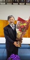 3月22日(火)が私にとって、教員生活37年間の最後の給食となり、味わって食べ終わった後に・・・。なんとビッグサプライズ。厨房で働かれている調理員さんたちが、綺麗な花束をくださいました。私は美味しい給食を食べさせてもらっただけなのに。嬉しくて、嬉しくて。今後も明星視覚支援学校の美味しい給食の提供をお願いします。