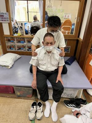 30分のあん摩を2名の利用者様に受けていただきました。お一人の方は昨年にも受けてくださったようで、今回の施術も楽しみにされており、「明日も来てね」とユーモアを交えてお話ししてくださいました。