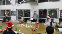 サンタクロースの登場やクリスマスツリー点灯式、ゲームなどを計画しました。サンタクロースからはクリスマスプレゼントをもらいました。ゲームでは5W1H改め4W+感想という形にアレンジしそれぞれの答えを各自が考え、それをつなげて文章にしました。想定外な文章になりとても面白いゲームになりました!!