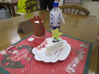 茶話会でお菓子とジュースを楽しんだ後、お月見をしようと外に出ましたが、ちょうど雲に隠れて見えず…。