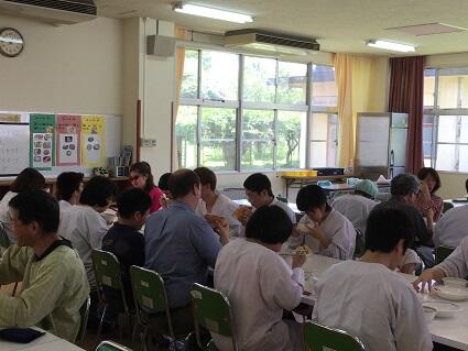 今日は、ALTのケリー先生との最後の授業でした。ケリー先生は7月を最後にアメリカへ帰国されます。今日は幼稚部、小学部、中学部、高等部普通科の子どもたちがケリー先生と最後の英語の授業を行いました。そして、給食を同じテーブルで一緒に食べました。献立はケリー先生の大好きなホットドック、トマトのマリネ、夏野菜スープです。ケリー先生には幼稚部の幼児から理療科の生徒まで本当にお世話になりました。どうか帰国されても明星視覚支援学校を忘れないでくださいね。また、遊びに来てくださる日をお待ちしています。