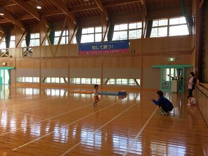 体育館の端から反対側の端にいる先生の元へ一人で走っていきます