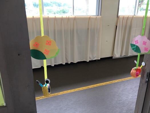 本校幼稚部の教室入り口には季節ごとに制作した風物がのれんとして飾ってあります。6月に入りカタツムリとあじさいが飾られました。子どもたちはそれぞれに触りながら、「目がついてる!」、「ぐるぐるになってる!」と嬉しそうに話していました。日常の中に季節があり、触って確かめられる工夫にとても感心すると共に嬉しくなりました。
