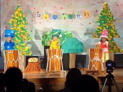 当日は、各家庭から持ち寄った材料を使って、親子でサンドイッチとサラダ作りに取り組みました。会食の時間には美味しそうに食べる姿が見られました。また、親子での出し物では、各家庭様々な趣向を凝らし楽しいひと時を過ごしました。最後に年長さんから卒業記念の「舞台」をいただきました。牛乳パックを集めて詰めて・・・と大掛かりな作業にも関わらず最後まで弱音を吐かずに力を合わせて作ったそうです。この舞台は、「お話発表会の舞台」等で活用していきます。